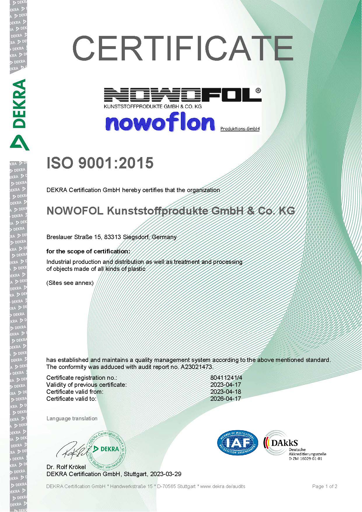 “Performance at its best.” Our intense focus on quality is evident in our clearly defined processes. NOWOFOL’s ISO 9001 certification shows our corporate commitment to quality. This quality certification demonstrates our ability to meet our customers demanding standards in terms of consistant product quality.